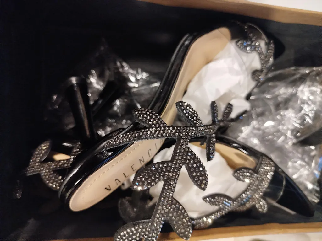 Embellished leaf style open tow front with slingback heel